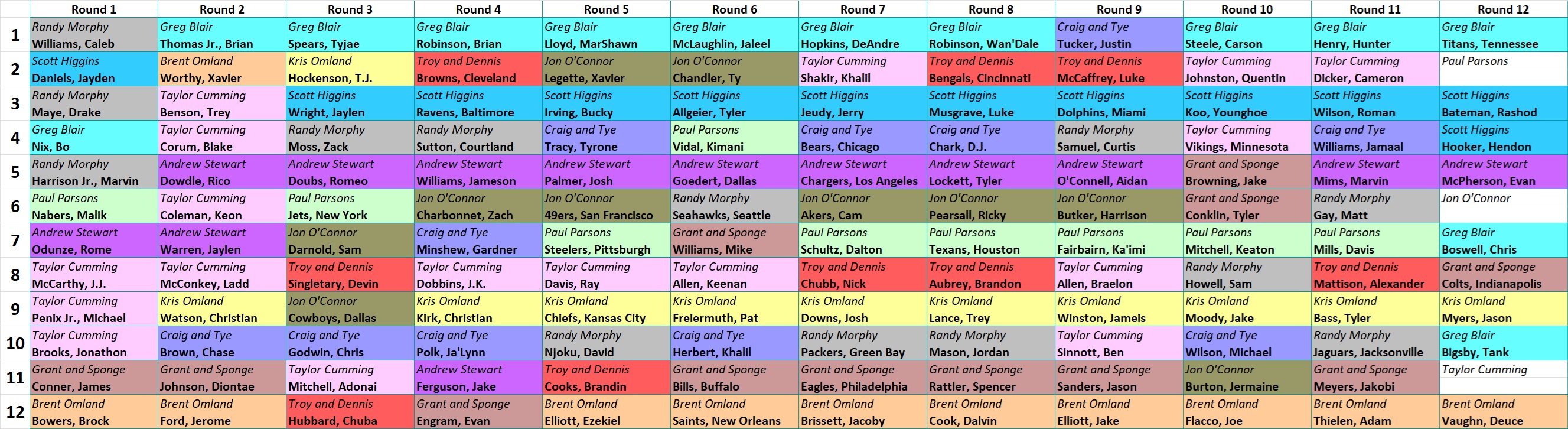 2024 Draft - To see the results click here